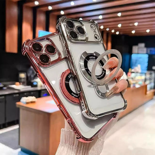 Bracket Shockproof Plating Clear Case for iPhone