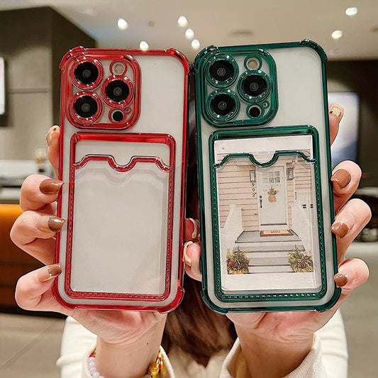 Plating Card Holder Soft Case For iPhone